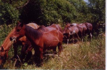 Bieszczady, konie w Wolosatym (podobno huculy).