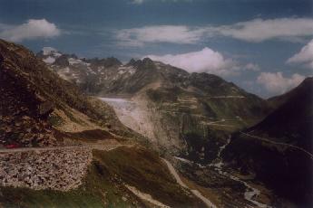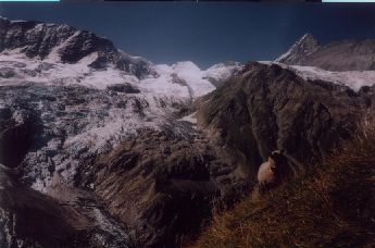 Lodowiec UnterGletcher, Fischerhornwand, Monch, Eiger.